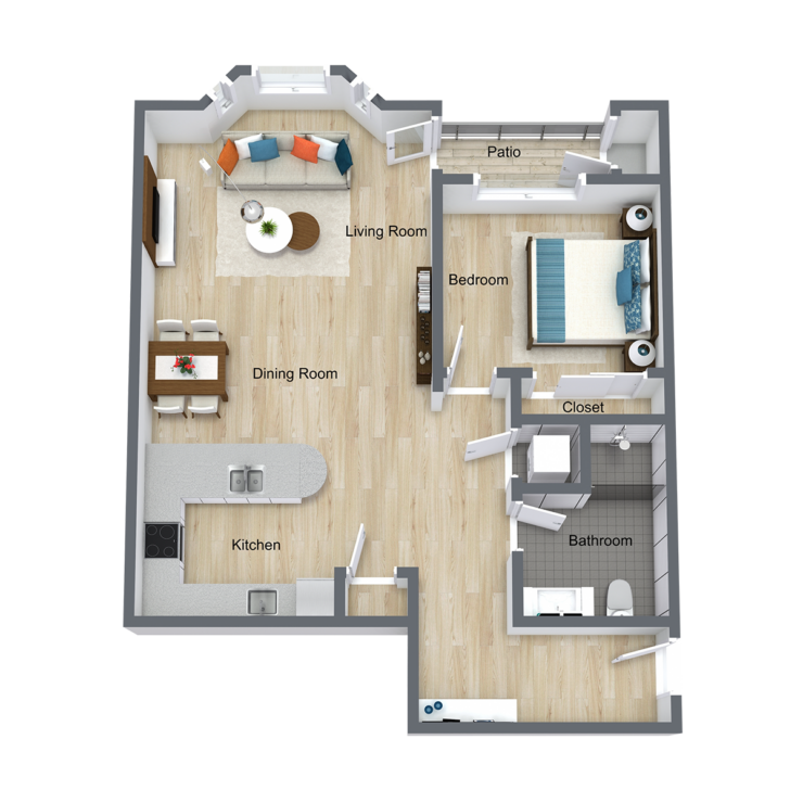 750 Sq. Ft.Full Kitchen