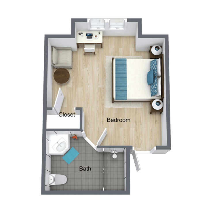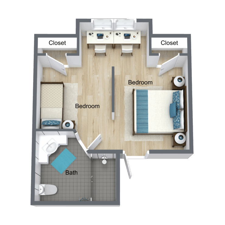 Bright and inviting, this serene bedroom fosters a sense of community and comfort for residents.