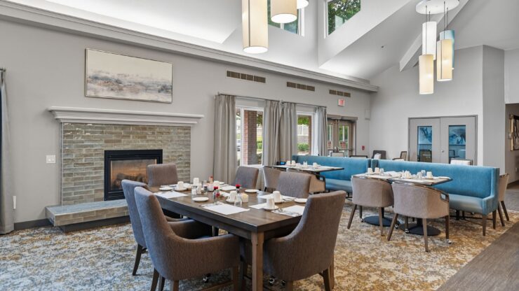 Indulge in an exceptional dining experience at our inviting restaurant, where residents can enjoy chef-crafted specials, fresh salads, house-made desserts, and complimentary beverages.