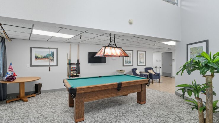 We offer activity programs, arts and crafts, card playing, exercise classes, exercise programs, game nights, indoor group activities, lectures and discussions, live entertainment, men’s groups, movie nights, musical instruments, organized sports (indoor), physical fitness program, piano, resident-run activities, TV (cable/satellite), wellness programs, Wii games, and women’s groups.